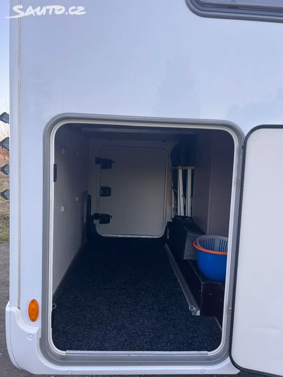 Exteriér a doplňky: Kvalitní markýza FIAMMA, držák na 4 kola, elegantní 16" ALU kola, prosklené dveře do nástavby s integrovanou moskytiérou.