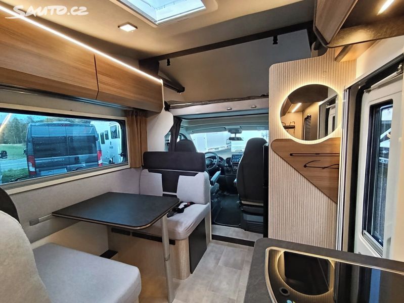 Obytná nástavba: 3× plotýnka, dřez, lednice 141 l, WC 17 l, oddělená sprcha, nádrž na vodu 95 l, odpadní nádrž 100 l, moskytiéry a žaluzie oken i dveří, vytápění Truma Combi C4, LED osvětlení, Remifront